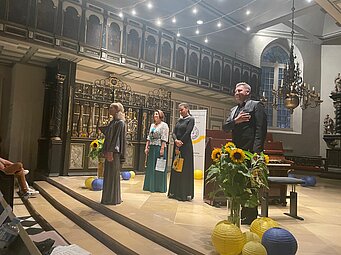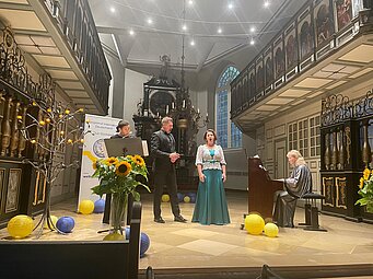 Die Künstler/innen des „National House of Organ and Chamber Music of Ukraine“, vielfach ausgezeichnet und als „Verdiente Künstler/innen der Ukraine“ geehrt, begeisterten das Glückstädter Publikum mit Werken von Händel, Rossini, Liszt, Ravel und Debussy. Es folgten Auftritte in Heide und Kiel.