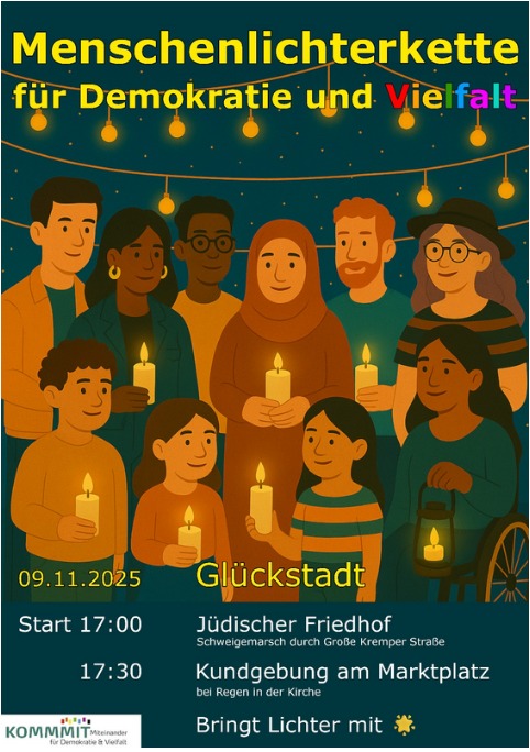 Der Verein will Zeichen setzen – für die Demokratie, für die Vielfalt, für Glückstadt. Die nächste Aktion ist nun für den 9. November geplant. Dann soll am jüdischen Friedhof eine menschliche Lichterkette gebildet werden.